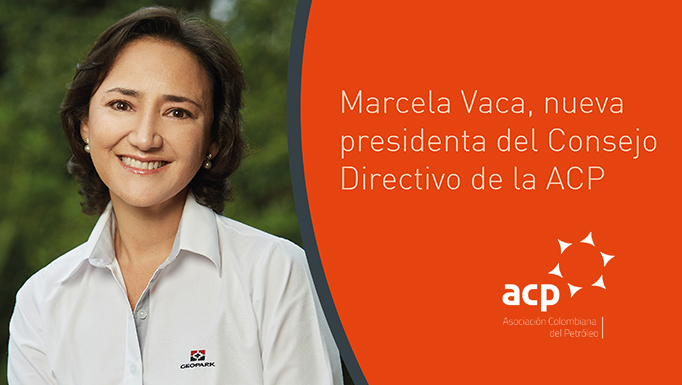Sala de prensa >Marcela Vaca, nueva presidenta del Consejo Directivo de la ACPMarzo 31, 2021 Bogotá D.C., Colombia – La Asociación Colombiana del Petróleo (ACP) le da la bienvenida a Marcela Vaca, Directora General de GeoPark, quien fue elegida por unanimidad como presidenta del Consejo Directivo en el periodo 2021-2022. El nuevo Consejo de la ACP, que inicia funciones desde este 1 de abril, está conformado también por Fernando Sarria, presidente de ExxonMobil Colombia; y Óscar Bravo, presidente de Terpel; en calidad de vicepresidentes.Fuente: Asociación Colombiana de Petróleo COMPARTIR