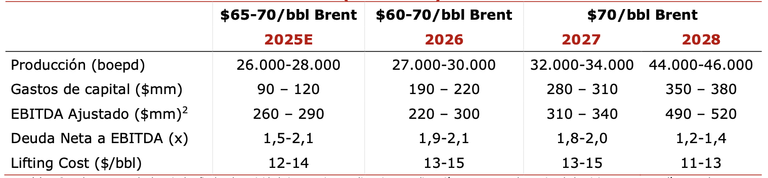 GeoPark Anuncia el Programa de Trabajo 2026 y la Guía de Mediano PlazoBogotá, ColombiaDiciembre 1, 2025AVANZA EL REDIRECCIONAMIENTO DE COLOMBIA, RETORNO AL CRECIMIENTO CON VACA MUERTA POSICIONADA PARA DUPLICAR EL EBITDA Y AUMENTAR LA PRODUCCIÓN EN MÁS DEL 60% PARA 2028 GeoPark Limited (“GeoPark” o la “Compañía”) (NYSE: GPRK), compañía energética independiente líder con más de 20 años de operaciones exitosas en América Latina, anunció hoy su Programa de Trabajo para 2026 (el “Programa”), junto con la guía para 2027-2028, los cuales han sido aprobados por el Directorio de la Compañía. Hoja de Ruta Hasta 2028: Escalando una Estrategia de Dos Pilares Proteger y Maximizar la Producción Base y la Generación de Caja en Colombia: La Compañía está enfocada en sostener y mejorar el desempeño de su bloque insignia Llanos 34 y de otros activos clave operados y no operados. Tras un sólido 2025 y avances favorables a partir del Investor Day de 2025, la producción en Colombia ha experimentado antes de lo esperado un punto de inflexión positivo. La producción está en ruta de crecimiento sustentado en un desarrollo disciplinado, la optimización de la base, técnicas de recobro mejorado y sólidos resultados en los pozos recientes. Estos esfuerzos están respaldados por el aumento del 22% en el 2P Original Oil in Place (OOIP)1 en el bloque Llanos 34, certificado recientemente, lo cual confirma una base de recursos significativamente mayor y fortalece la perspectiva de producción y económica de largo plazo del activo. Colombia continuará proporcionando una base sólida para generar flujo de caja libre sostenible, la fortaleza del balance general y los retornos para los accionistas. Regreso al Crecimiento con Vaca Muerta, Argentina: Con la exitosa integración de los bloques Loma Jarillosa Este y Puesto Silva Oeste, GeoPark confía en su capacidad para generar un crecimiento material de largo plazo desde su posición en la formación no convencional en la cuenca Neuquén. El equipo está enfocado en acelerar la actividad de perforación para lograr un salto significativo en la producción y el flujo de caja. Se espera que Vaca Muerta se convierta en una plataforma central de crecimiento dentro del portafolio de GeoPark hacia finales de 2028. Métricas Clave de la Guía de Mediano Plazo (2026-2028)(a) (a) Cuando corresponda, los niveles finales de actividad siguen sujetos a discusiones y alineación en curso con los socios de las joint ventures, en línea con los procesos de gobernanza estándar en los bloques operados y no operados. El redireccionamiento estratégico presentado en el Investor Day 2025 de la Compañía avanza en firme con una serie de desarrollos positivos: Aumento Sustancial en OOIP – Validado para Llanos 34: Una auditoría técnica independiente realizada por DeGolyer and MacNaughton (D&M), en paralelo con la Certificación de Reservas 2025, validó los nuevos modelos estáticos 3D de GeoPark para campos clave en Llanos 34, certificando un aumento del 22% —equivalente a 206 millones de barriles— en el 2P OOIP. Esta validación representa una oportunidad significativa para agregar reservas y producción futuras a lo largo del tiempo, fortalece el perfil de desarrollo del activo, incrementa el potencial de optimización y refuerza la ventaja operacional única y orientada a la creación de valor de GeoPark. Colombia – Punto de Inflexión Temprano en Producción: La producción alcanzó un punto de inflexión positivo en el 4T2025 (anteriormente proyectado para 2026). Se espera un aumento de volúmenes en 2026, respaldados por una optimización efectiva de la base, iniciativas de recobro mejorado y un sólido desempeño de pozos. Argentina – Desarrollo Acelerado y Mejor Perspectiva para 2026: El equipo de GeoPark ha logrado avances significativos en acelerar la perforación en Vaca Muerta. El incremento de producción de la Compañía, originalmente esperado para 2027, ahora se anticipa para 2026, año en el que la tasa de salida proyectada es de 5.000–6.000 bopd. Esto adelanta el crecimiento y fortalece la perspectiva de producción y flujo de caja de mediano plazo. Reservas 2025 – Cambio Significativo en Reservas 2P Certificadas y en la Vida de Reservas: El 24 de noviembre de 2025, GeoPark anunció una mejora significativa en su base de reservas 2P, que aumentó un 38% interanual. Como resultado, el índice consolidado de vida de reservas de la Compañía aumentó a 12,7 años, mejorando significativamente la visibilidad de producción y el valor a largo plazo. Estos hitos estratégicos proporcionan una base sólida para que GeoPark cumpla con sus objetivos de mediano plazo. El Programa de Trabajo 2026 alinea el capital con las oportunidades de mayor valor de la Compañía y convierte la estrategia en acción. Detalles del Programa de Trabajo 2026: Convirtiendo la Estrategia en Ejecución El Programa marca el primer año completo de ejecución bajo la nueva hoja de ruta de mediano plazo de GeoPark. Está diseñado para proteger la generación de caja en el corto plazo, acelerar el crecimiento de los activos no convencionales de GeoPark y posicionar a la Compañía para escalar producción y valor para el 2028. En 2026, el programa de CAPEX de la Compañía de US$190-220 millones, respaldará una producción de 27.000-30.000 boepd entre Colombia (24.500-26.000 boepd) y Vaca Muerta (2.500-4.000 boepd). Se espera que la mezcla de producción sea aproximadamente 97% petróleo y 3% gas natural, con 12% no convencional y 88% convencional. GeoPark espera perforar entre 27 y 36 pozos brutos (incluyendo 6-8 pozos brutos exploratorios), con aproximadamente 86% asignado a actividades de desarrollo y 14% a actividades de exploración y evaluación. Colombia – 22-31 pozos, CAPEX de US$110-120 millones: Bloque Llanos 34: Enfoque en maximizar los factores de recobro en los campos, incluyendo la optimización de la producción base (waterflooding,