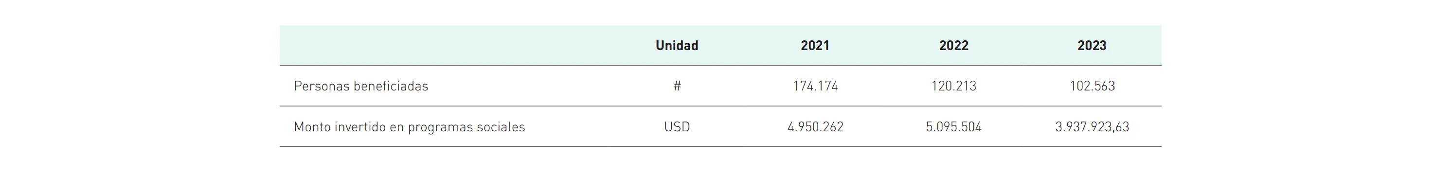 Contribuimos al desarrollo sostenible de las comunidades cercanas a nuestras operaciones a través de proyectos de inversión que fortalecen capacidades, fomentan la inclusión social y productiva y promueven el cuidado y la conservación del medioambiente.