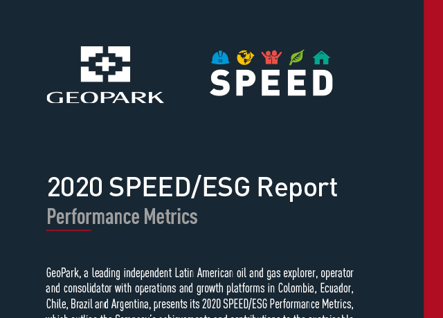 1. The SPEED/ESG 2021 metrics published in June 2020 had some non-material adjustments as part of the process of verification of the SPEED/ESG 2021 Report by Bureau Veritas, which did not compromise its contents.. 2. The 2020 SPEED/ESG Report published in September 2021 had some non-material adjustments as part of a process of verification by Bureau Veritas after its publication, which do not compromise its contents. For more detail on this update click here. Please share your questions or comments with us by writing at conexiónes@geo-park.com
