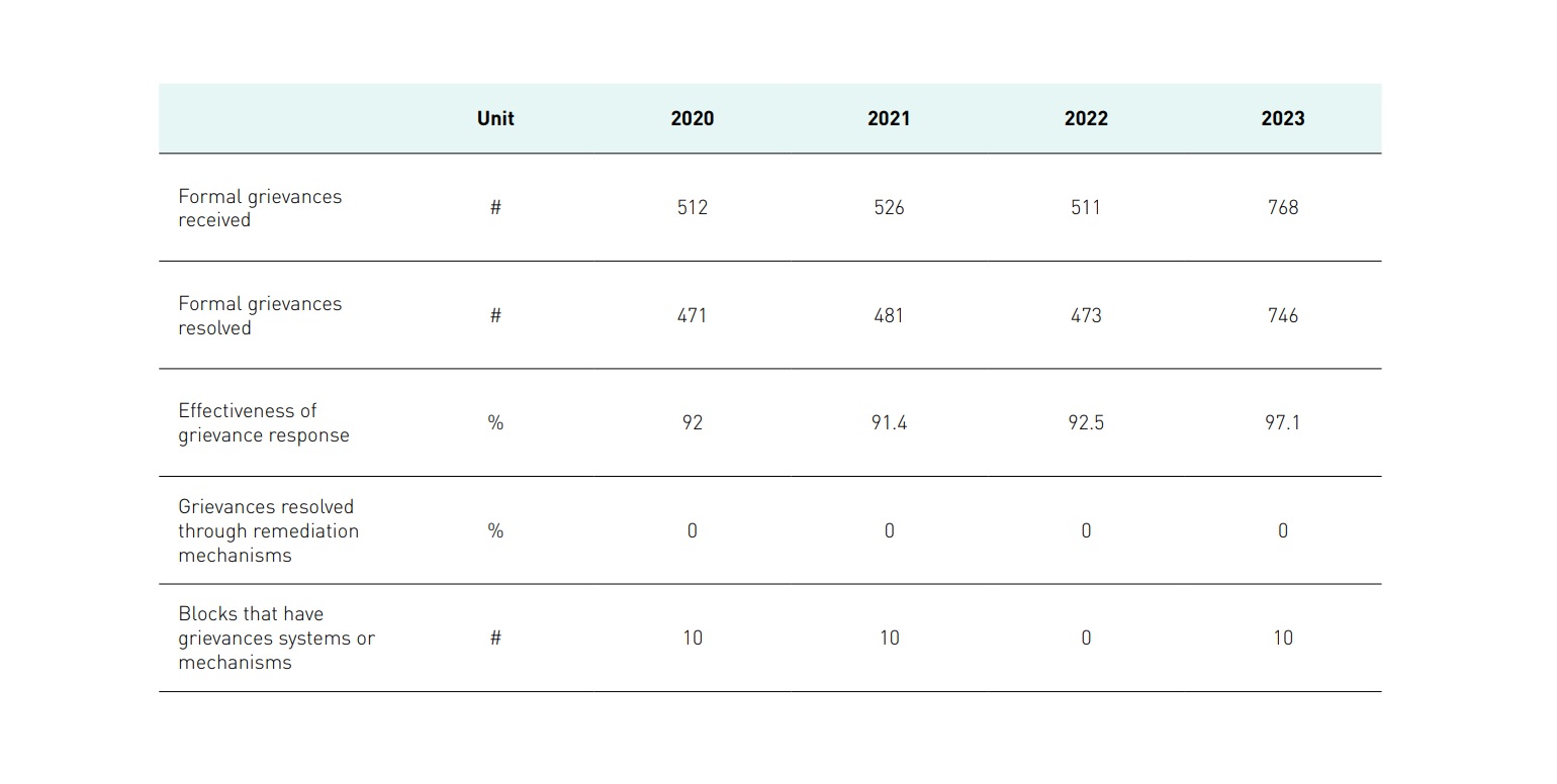 We are obliged to report alleged Human Rights violations and socio-environmental impacts in our areas of operation to relevant authorities, depending on the type of information and the analysis of specific cases. All grievances received conclude with a response to the grievant.
